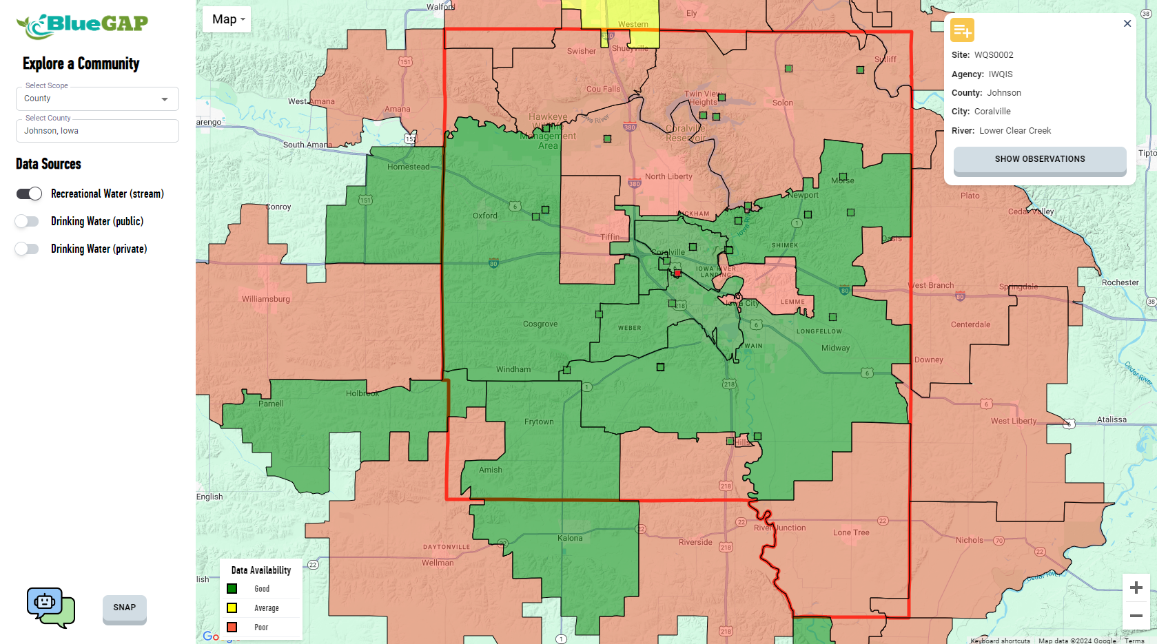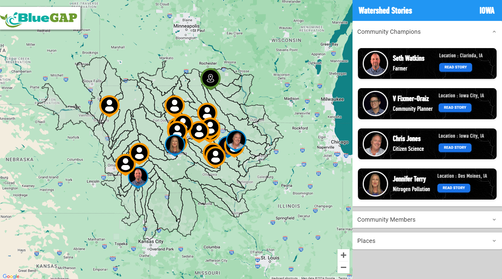 BlueGAP is designed to support water quality management by focusing on nitrogen-related compounds in water, which are crucial for maintaining the ecological health of the pilot regions. Working closely with local stakeholders in three pilot watersheds, the platform seeks to improve water quality management practices in Iowa, Florida, and the U.S. Virgin Islands. Through its innovative design, BlueGAP IS provides users with intuitive tools to access, analyze, and track water quality data, making it a valuable resource for improving nitrogen management and promoting sustainable water practices in these regions.