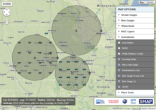 A web-based interface is developed for positioning radars and rainfall instruments with adjustable range and location, watersheds, and rich spatial layers on a map interface.