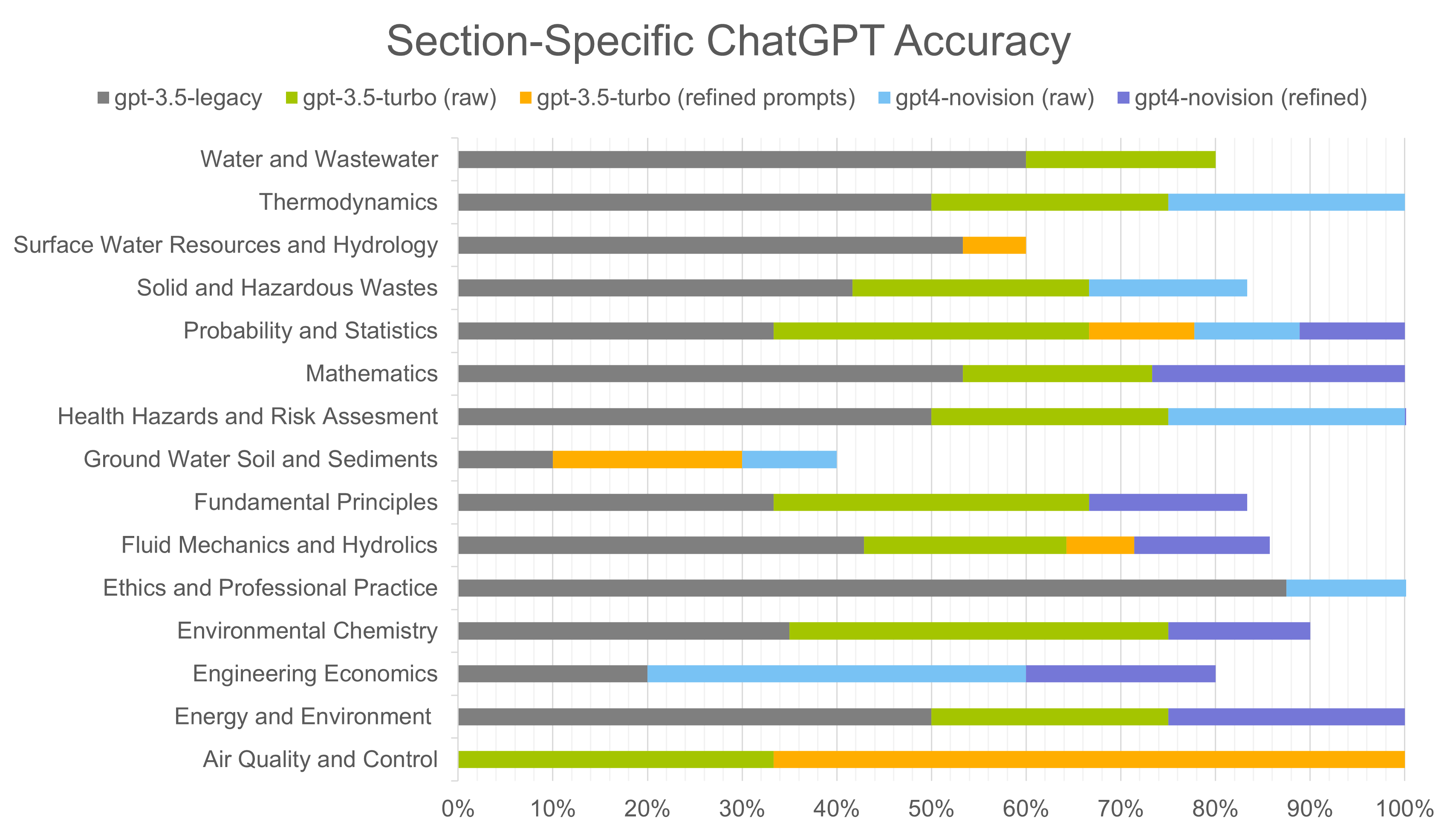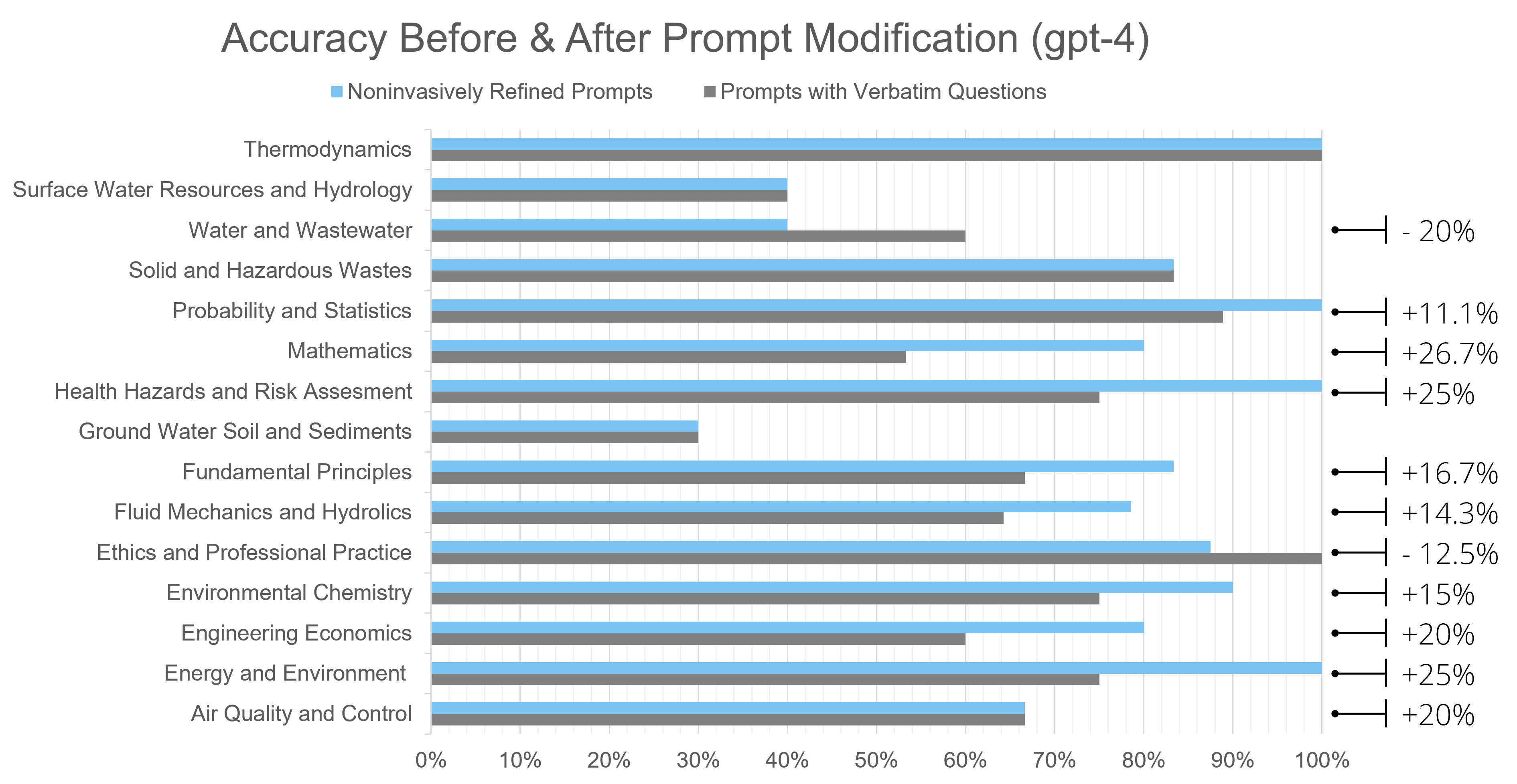 Our study demonstrates the potential of ChatGPT as a valuable tool for addressing engineering problems and preparing for the Fundamentals of Engineering (FE) licensing exam. The GPT-4 base model with no vision achieved a notable overall accuracy of 66.42% on the FE Environmental Exam dataset, indicating its capability to provide satisfactory results across various question types (e.g., multiple-choice, fill in the blank). Our research also highlights the significant impact of noninvasive prompt modifications on the GPT-4 base model (no vision), leading to a mean accuracy increase of 8.95% for the FE Environmental Exam, resulting in an overall accuracy of 75.37%. While limitations were observed in specific subject areas, such as Ground Water Soil and Sediments, these findings emphasize the importance of continuous model development and prompt refinement to effectively address complex questions.