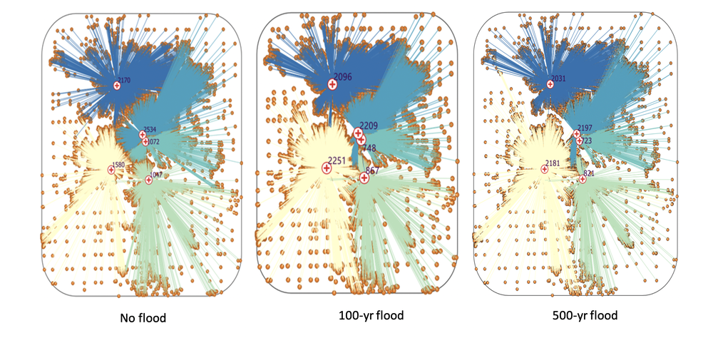 This project provides a comprehensive analysis of flood impacts on city-scale transportation system topology and accessibility in Iowa using graph-theoretic methods, such as single-source shortest path analyses. Accessibility of a road network is evaluated on a digraph by analyzing the ability (alternative routes) to reach the amenities (hospital, fire department, and police station) under various flood return periods as well as the assessment of the difficulty (an increase of shortest distance) of reaching the amenities in the network.
