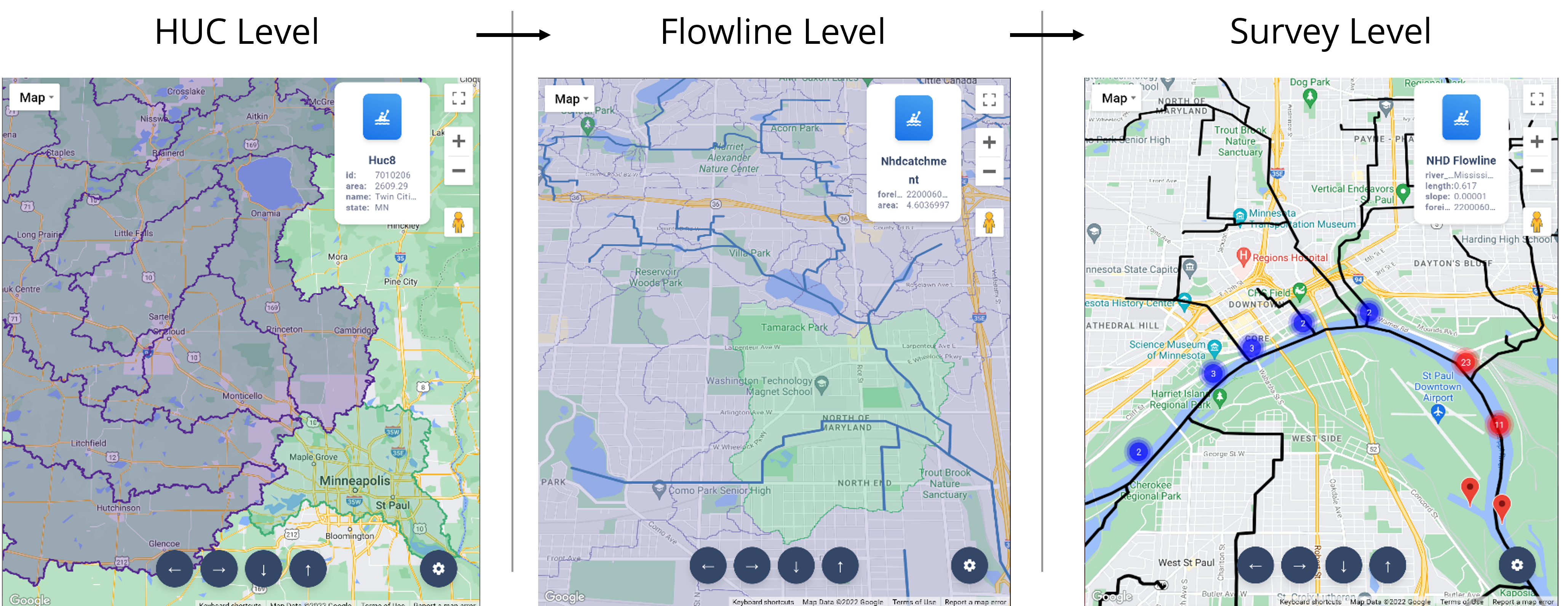 River morphology data and analysis are critical for a plethora of studies (e.g., sediment transport and hydrodynamics), yet river morphology research is hindered by the lack of a collaborative and community-based system for easy access to large-scale data and services. This research puts forth RIMORPHIS, a publicly available research portal for river morphology studies that makes customized and interactive bathymetry-related GIS functionality and data available on the web on-demand with intuitive map-based 2D and 3D visualizations and user interfaces. Distributed and scattered bathymetry-related data resources are gathered and indexed to be served via an interconnected database model that is compatible with a variety of data structures from different organizations and individuals, varying available river morphology data, and discordant entity identification and relationships in the external data resources. In order to establish a national watershed reference system to associate gathered bathymetry data in their geographical area, NHDPlus High Resolution (HR) is utilized to retrieve catchment, flowline, and junction information for the United States. Association of localized river morphology data (e.g., processed river cross-section points) with a national reference system enables complex and large watershed level queries for big picture assessments through the RIMORPHIS platform. In order to support the community for in-house river morphology research, RIMORPHIS provides two RESTful APIs (i.e., Data and Tools). Data API is created based on the Swagger framework and OpenAPI specification to allow query-based access to the data. Tools API serves individual algorithms and bathymetry-related functions of RIMORPHIS for utilization with custom parameters and scenarios. From a broader perspective, interactive, on-demand, and one-stop nature of the cyberinfrastructure have the potential to propel hydrological research and education as it can serve as a free information resource for stakeholders by making it easier to access data, information, functionality, and services on river morphology.