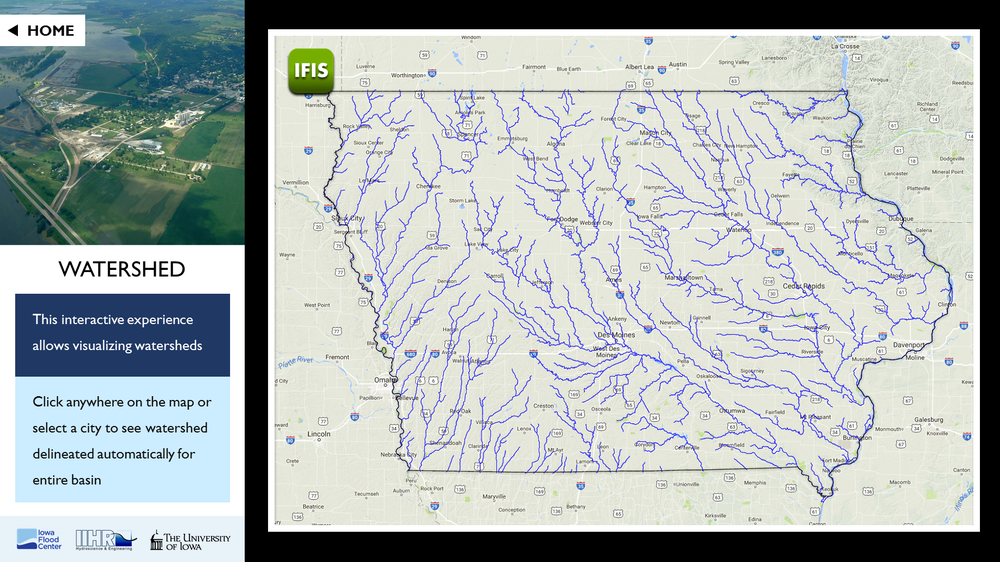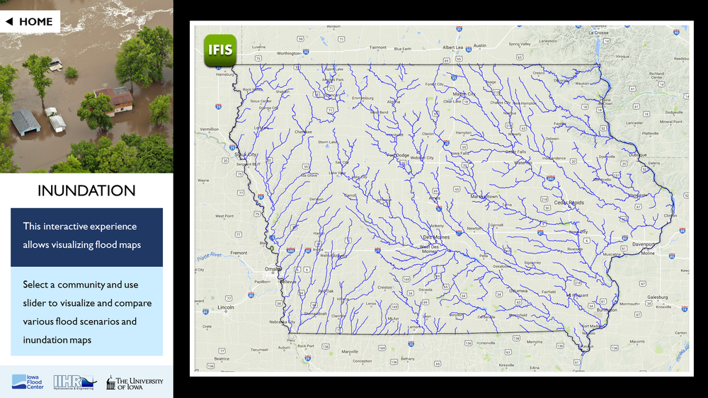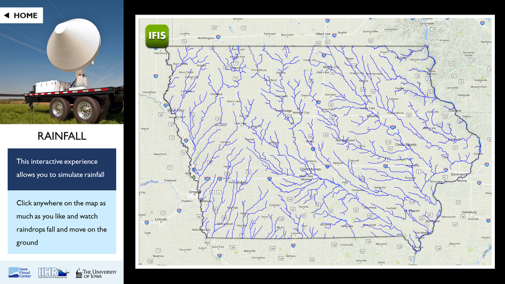 Interactive rainfall, water flow, watershed delineation, and inundation simulators are created to bring cutting-edge hydrological research to Iowa's commmunities statewide.