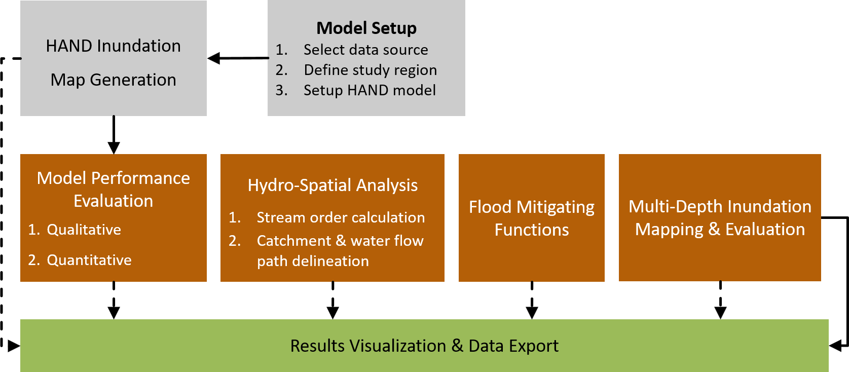 - Li, Z., Duque, F.Q., Grout, T., Bates, B. and Demir, I., 2023. Comparative analysis of performance and mechanisms of flood inundation map generation using Height Above Nearest Drainage. Environmental Modelling & Software, 159, p.105565.