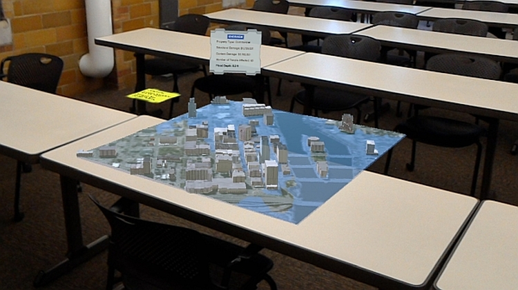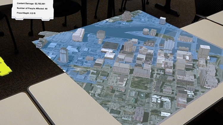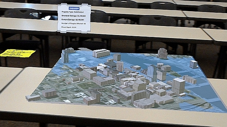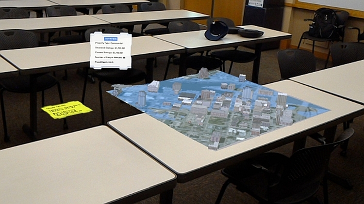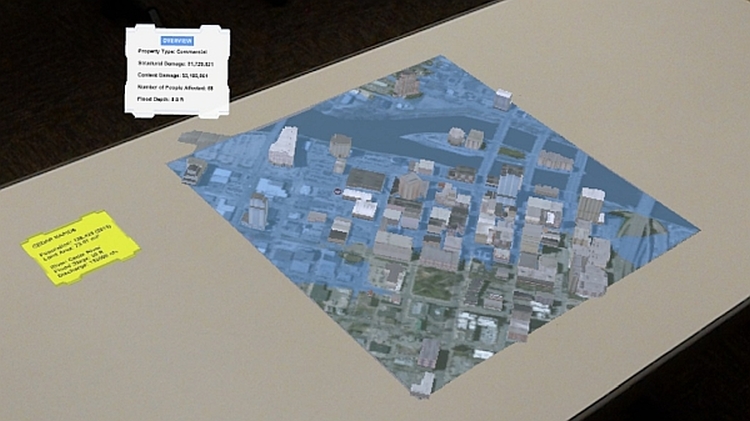 An interactive holographic application is developed to visualize cities in 3D structure during flooding with flood loss and damage estimates from HAZUS datasets for individual buildings.