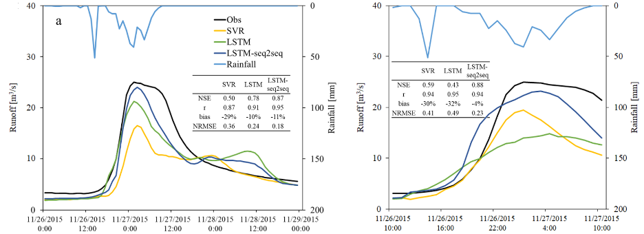 - Xiang, Z., Yan, J., & Demir, I. (2020). A rainfall‐runoff model with LSTM‐based sequence‐to‐sequence learning. Water Resources Research, 56, e2019WR025326. (DOI: https://doi.org/10.1029/2019WR025326)