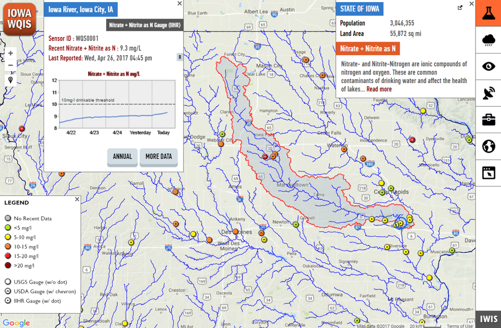 This project includes utilization of smartphones for monitoring water quality. Volunteers use a nitrate test strip and quantify the environmental variable using a smartphone camera. The data will be send instantly to a central server to visualize and share using a web-based interface and Iowa Water Quality Information System (IWQIS).