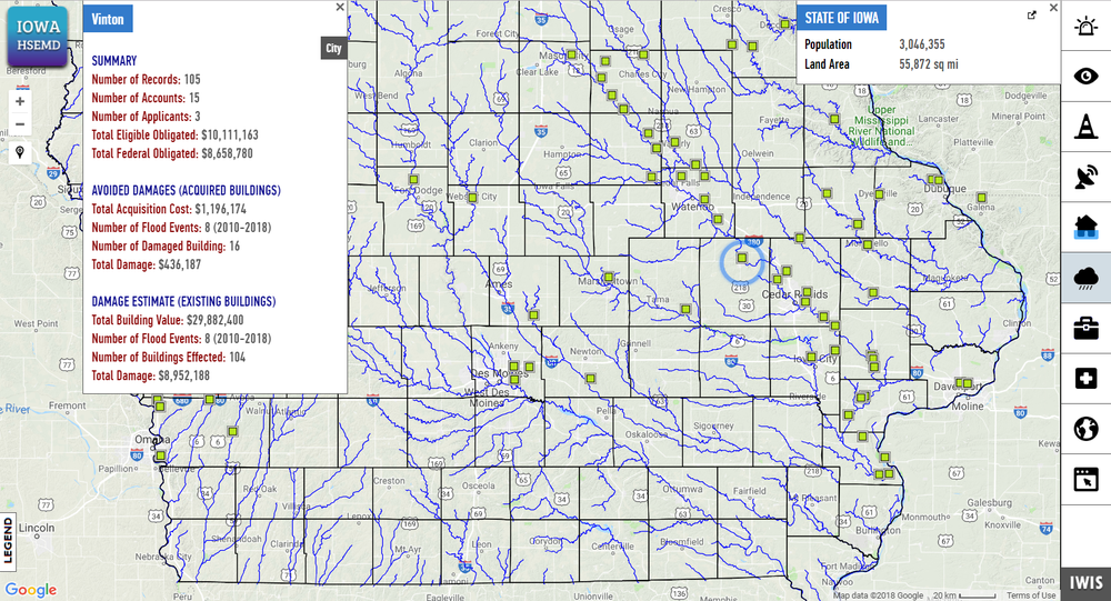 A new data analytics framework is developed for Homeland Security & Emergency Management Department for historical hazard mitigation and public assistance project datasets. The historical dataset can be visualized by location, date, financial feature, and program type. Property buyouts and existing buildings are incorporated into the framework for analyzing avoided losses and historic losses. These estimations were integrated to the real-time system for a pilot city. Decision makers can access the system to evaluate benefits and costs for the acquired properties and historic losses for the existing buildings. Thus, a scalable platform that allows to investigate historic buyouts and of future acquisition is created for decision makers.